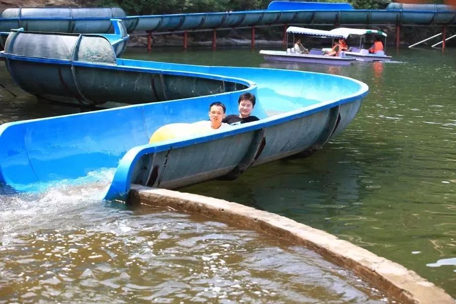 小漂流依山而建,全长约 2000 米,游客们在一定安全装 置的束缚下,从高处滑下,沿着被设计好路线的水道漂行,在山林间穿梭迂回,激起千重水花万重浪,还可以体验到一定程度的失重,整个过程刺激有趣。